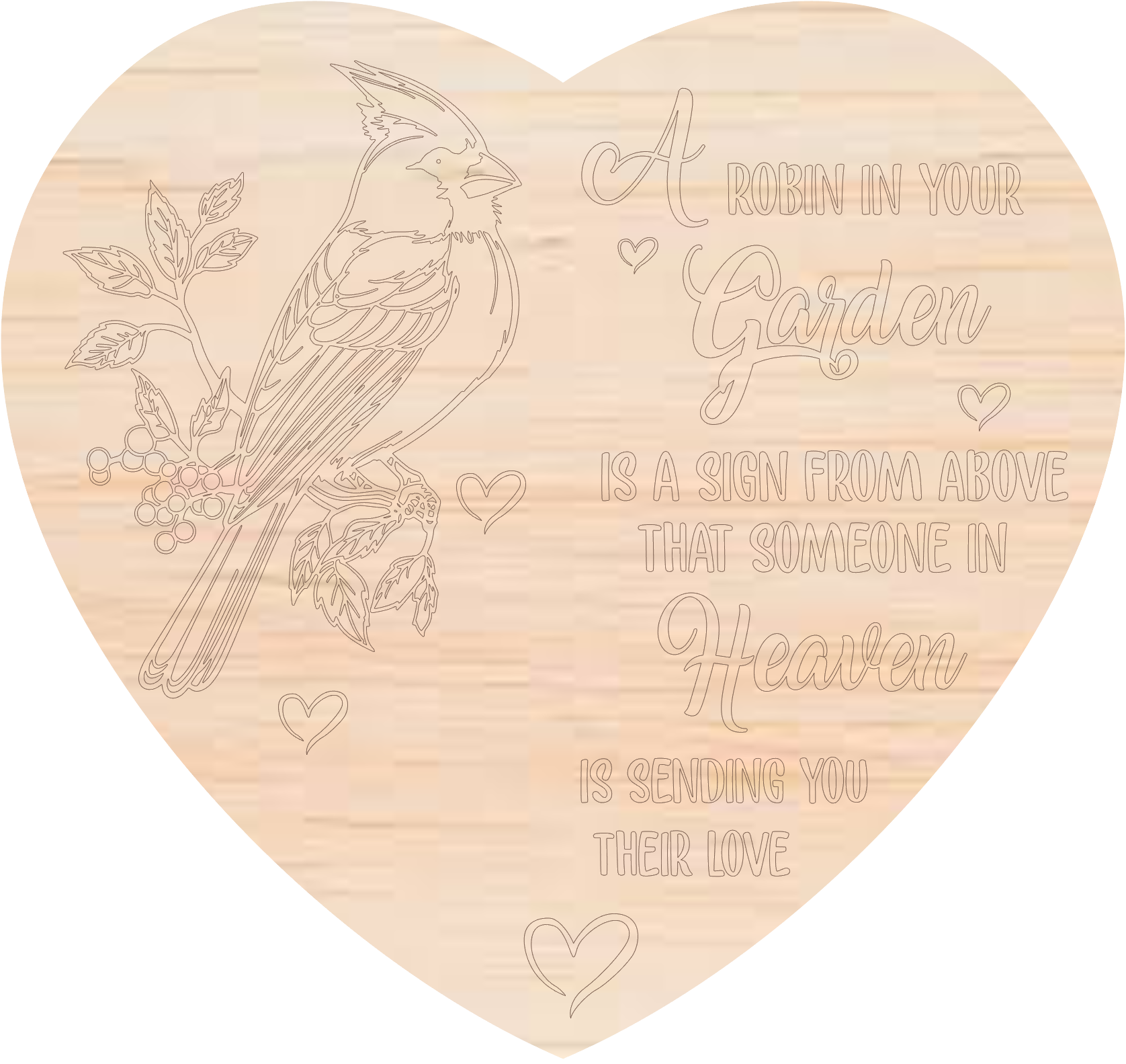 Memorial hart met easel display "A Robin in your Garden"