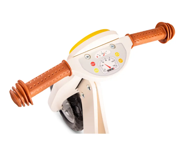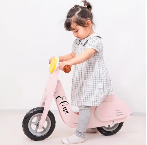Je kleintje kan voortaan in stijl rondrijden met deze prachtige houten balans scooter. Op avontuur gaan wordt nog leuker met deze loopscooter! De scooter wordt gratis gepersonaliseerd met naam!