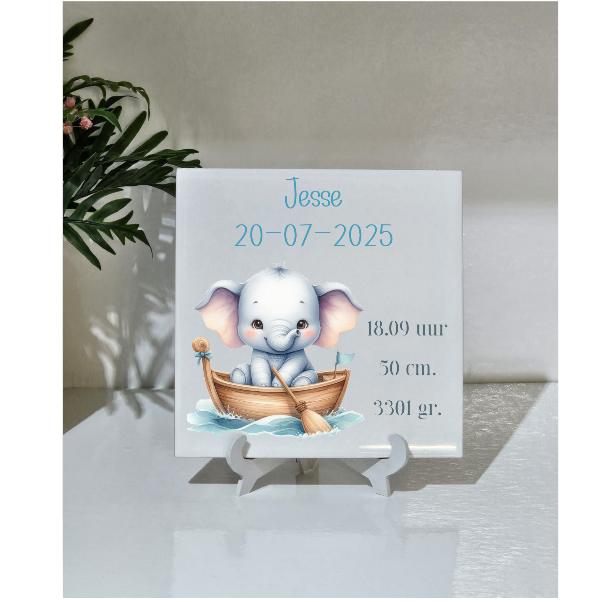🍼 Gepersonaliseerde Geboortetegel Elephant in boat