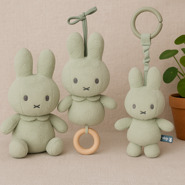 Deze lieve Nijntje knuffel in zachte groene tint met bloemenpatroon is een onweerstaanbaar vriendje voor je kleintje. Gemaakt van superzachte materialen, perfect om mee te knuffelen, te spelen of om troost te bieden tijdens het slapen. Dankzij het handzame formaat van 20 cm is Nijntje makkelijk overal mee naartoe te nemen – van bedje tot kinderwagen.