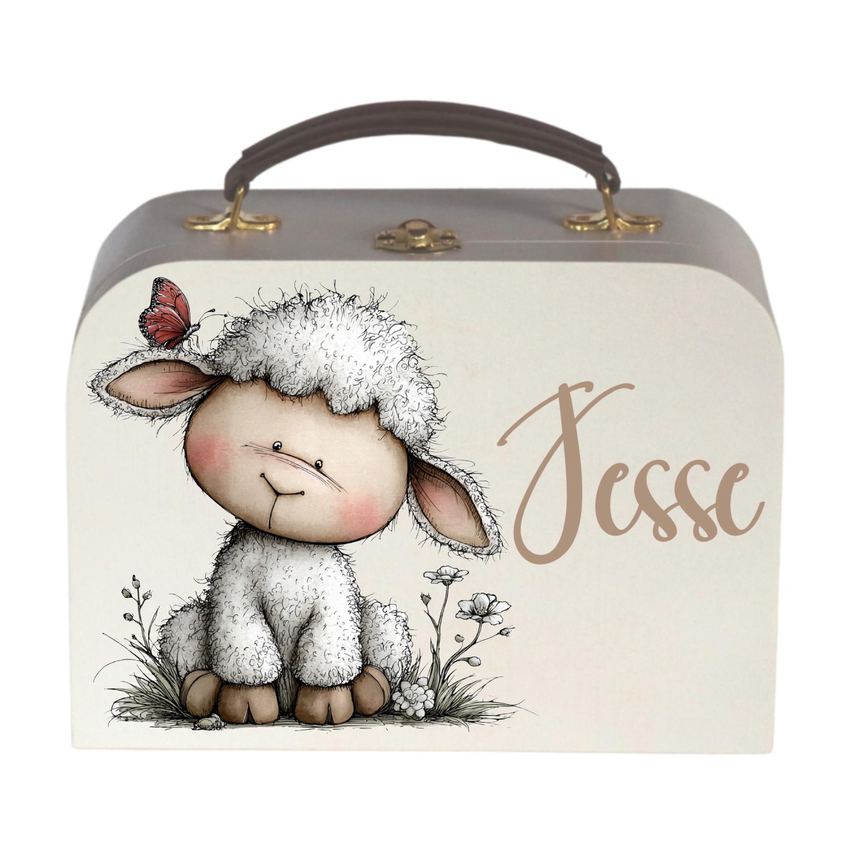Houten Koffertje (wit) Whimsical Sheep with Flowers