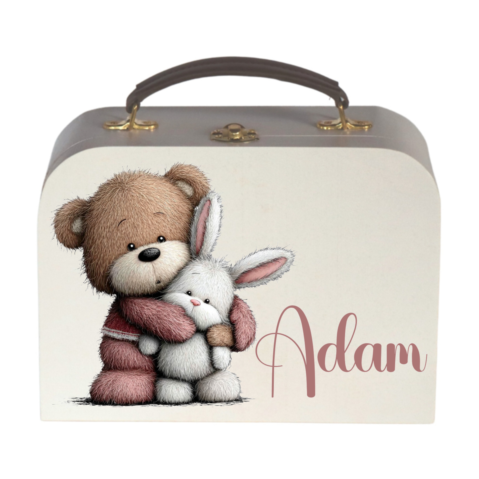 Houten Koffertje (wit) Whimsical Teddybear iwith rabbit