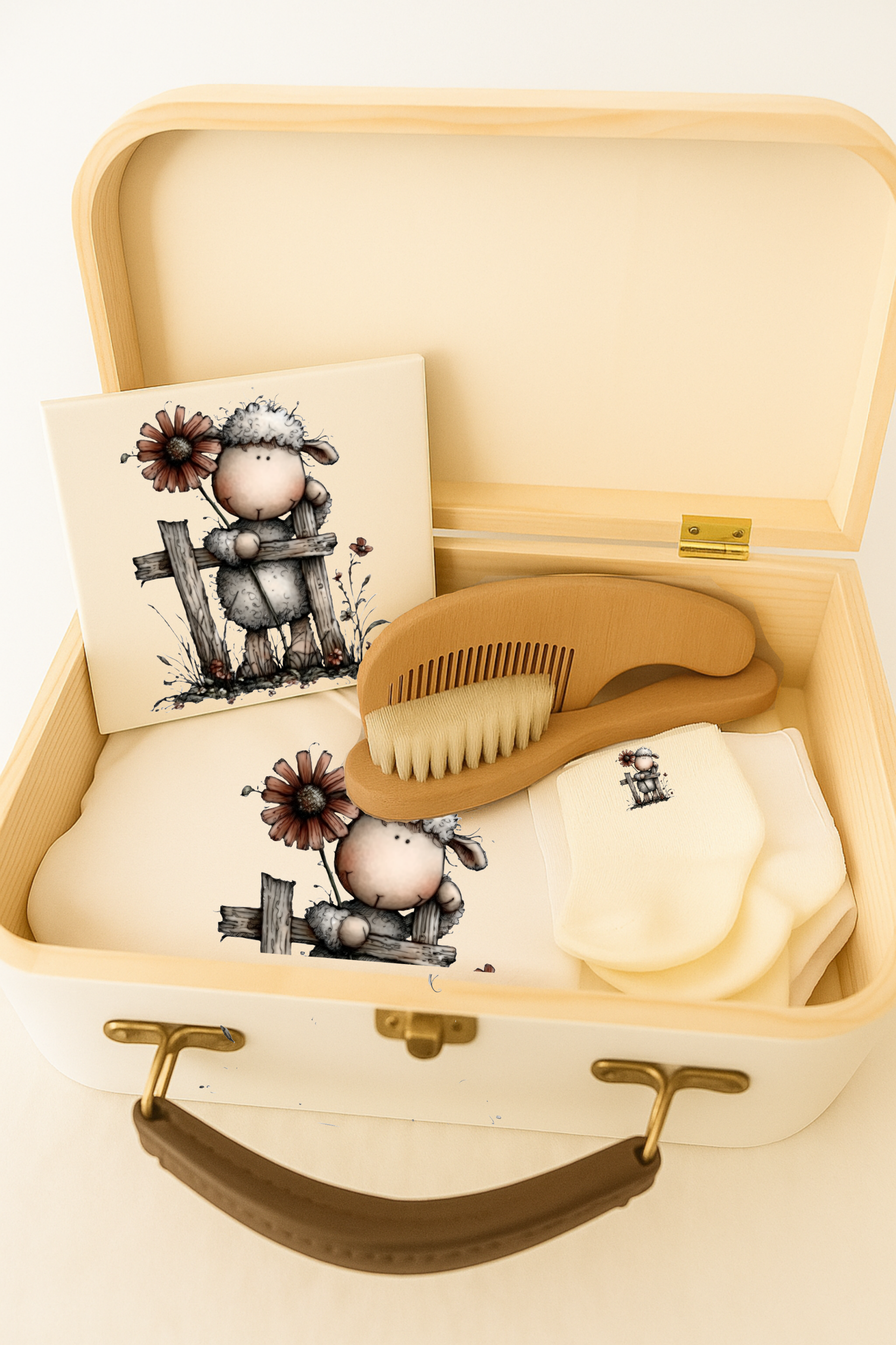 🧸Cadeau set – Gevuld houten koffertje met schaap print